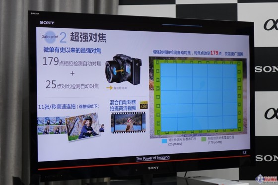 接下来是索尼微单TMA6000的重要升级点部分,也就是官方所称的“微单TM有史以来的最强对焦”,高达179点相位检测自动对焦+25点对比度检测自动对焦。增强的相位检测自动对焦已经基本覆盖满了拍摄画面,通过示意图我们可以非常直观的看到“几乎满屏的对焦点”,拍摄动态物体时更是得心应手。