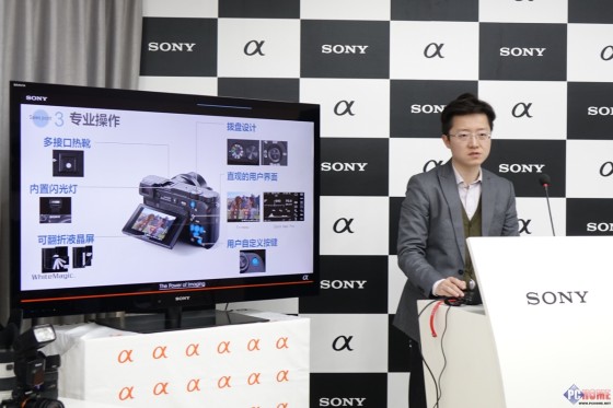 接着,索尼的戴士杰先生通过幻灯片的方式简单介绍了下A6000的相关情况。首先关于用户定位,索尼将A6000定位于发烧友与家庭/入门用户之间,目标人群设定为1、卡片机和入门单反的升级用户;2、第一次购买相机的用户,从这个定位上我们不难看出虽然很多人认为A6000是NEX-6/NEX-7的后继机,但结合产品定位和目标人群,以及在后续Q&A中官方的解释,微单TMA6000其实是一款全新的系列,至于怎么个全新法,笔者后续会着重谈谈我的看法。