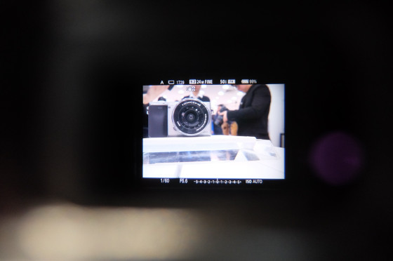会后则是模特拍摄环节和媒体体验环节。在这里笔者也是匆匆忙忙的将这款产品的外观简单拍了一下,以及菜单情况等。现场布置了小火车,不少媒体朋友都争相恐后的在那里进行拍摄体验,我也算是凑个热闹也拿了一台套机简单把玩了一下。选择了快门优先模式1/250s,自动ISO和速度优先连拍模式(Hi高速连拍),通过视频(由于现场环境条件限制,未来将带来更稳定、严谨的测试)可以较为直观的看到高速连拍及焦点追踪的情况,与过往机型相比有显著提升。