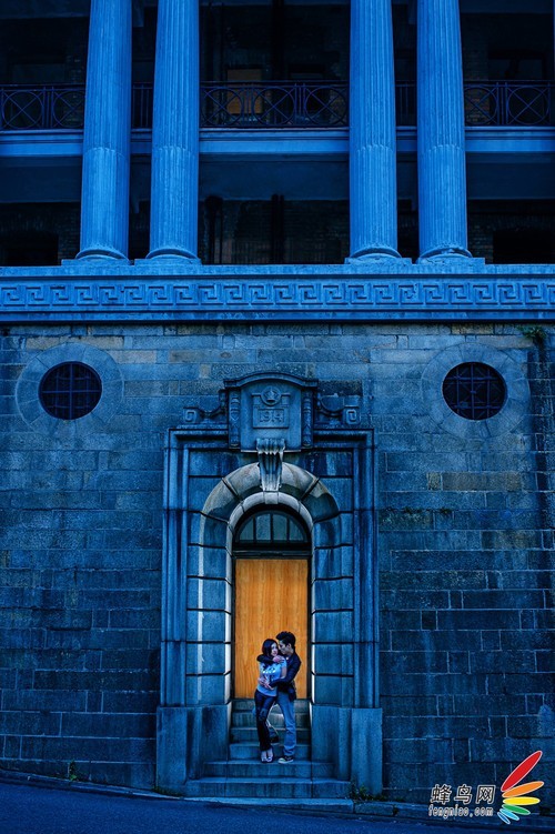 闪灯案例分享,香港中环,当时是下午四点多,天色较暗,喜欢这建筑。新人身后用闪灯加自制束光筒,加橙色片,对着拱门顶端(角度控制很重要),较弱的输出量,门口的那块木板因为闪灯,黄色更加醒目,后期适当调整色温和局部对比。形成很强烈的冷暖对比。