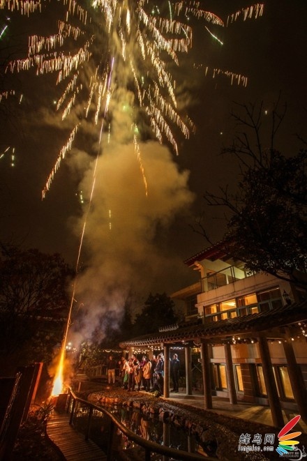 晚上在新人家里开的Party,最后他们想在院子里放烟火,希望我可以把这个瞬间记录下来。放烟火之前,看了环境和选择机位,布置了闪灯的位 置。闪灯分别在十一点方向和一点方向。重点是控制画面中,人物和环境的曝光的平衡。曝光数据:感光度2000,光圈f8,速度1/2秒。