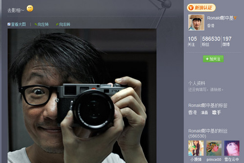 郑中基是香港艺人中玩微博的一员,而其微博中不时会发一些摄影作品以供欣赏。当中多为徕卡拍摄,徕卡镜头特有的色调,加上电影色调的后期效果,郑中基的作品深受网友好评,转发及评论都相当多。