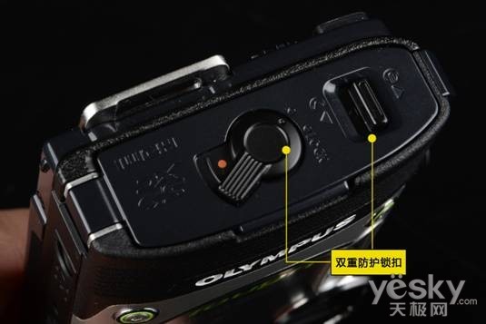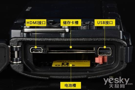 在机身右侧,就是我们之前提到的电池/存储卡区域,为了节约地方,高清HDMI接口和USB接口也都被设计在此处。这款TG850产品特有双重锁扣设计,这是作为密封的一大保证,当然这两个锁必须同时开启才能打开,保证了其密封性。