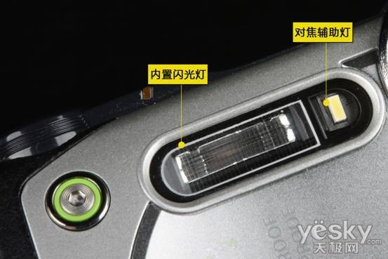 在奥林巴斯TG-850机身表面顶部是内置闪光灯和对焦辅助灯,在室内或者弱光的地方可以有助拍摄效果。
