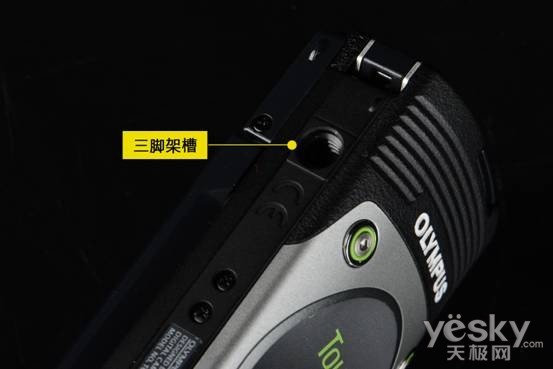 最后我们介绍下奥林巴斯TG-850的机身底部,根据奥林巴斯的常规设计,我们可以看到只有1个三脚架和产品出厂信息,而电池和存储卡的位置则被设计在侧面。这点当然与它的防水设计想关联,详细的内容,我们下一张再探究竟。