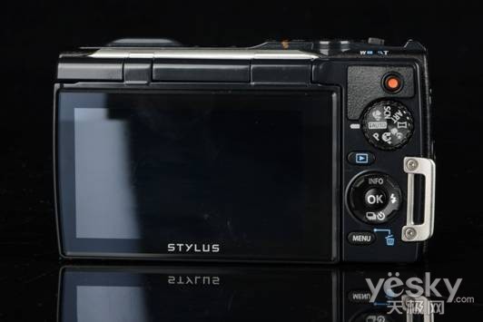 奥林巴斯TG-850数码相机的背部采用了一个可翻转的3英寸-46万像素LCD屏,配合180°的翻转设计,让用户在水下可以很方便地实现自拍。需要注意的是,当LCD屏幕翻转的时候,转轴不具备抗压功能,这里还是要小心点使用。