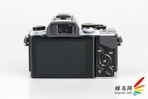 而在机身背面则拥有一块3英寸的可触摸可翻折液晶屏,这块液晶屏拥有约104万画点,在取景、构图时可以显示细腻的画质。不过美中不足的是,触控功能只能 应用在触控快门和照片浏览的时候,并不是所有功能动能通过触摸显示屏来完成。但是双拨轮操作的引入则很大程度提升了操作感。OM-D系列与PEN系列最大 的不同就是前者拥有电子取景器,E-M10也不例外。一个拥有144万画点的电子取景器能够给拍摄提供极大的便利,该电子取景器拥有100%视野率和约 1.15倍的放大倍率,显示时滞仅为0.007秒。
