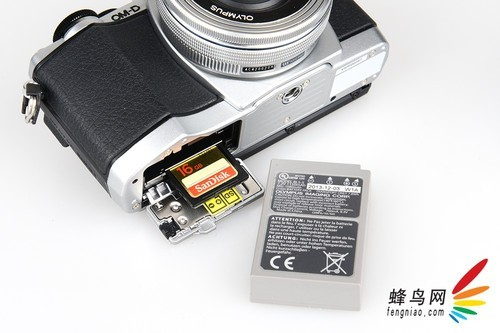 由于机身小巧,E-M10采用了最节省空间的一体式内存卡和电池槽。电池方面,使用的是型号为BLS-5锂电池,电池容量为1150mAh,官方介绍可以 拍摄350张左右。而在实际使用中,也与标称比较接近,对于经常外拍的用户来说,可以再多携带一块电池以备不时之需。
