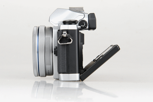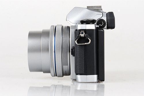 我个人是非常喜欢E-M10的正面设计的,银色金属加上黑色蒙皮的经典复古元素非常抢眼,棱角分明的边角设计为机器又增添了几分刚毅。