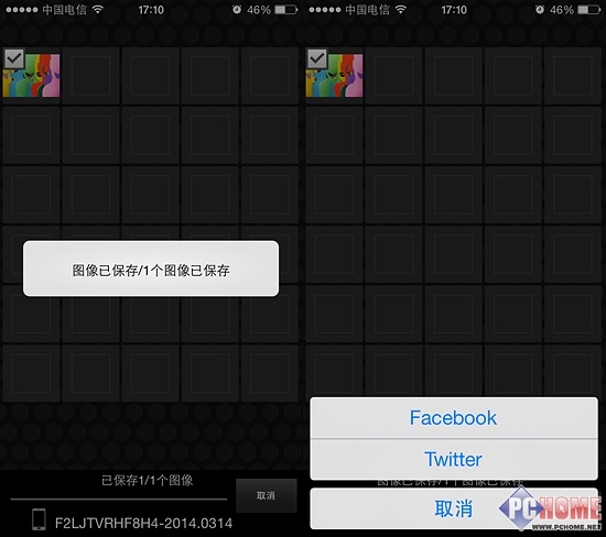 其实当你在传输完照片自后就可以立即分享它,把它上传到各种社交网站上去,可惜App自带的两个社交类网站太过前卫了。