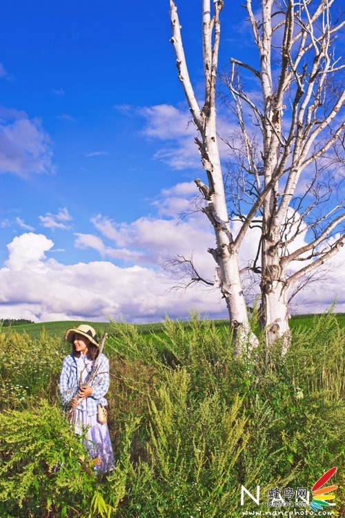 人物摄影的基本取景手法(景别)分为全景、中景、中近景、近景、特写等。北海道风景如画,建议大家可以多多尝试下全景拍摄。风景画面里,如果能 够有人作为点缀,可以给画面带来生动与灵气。人物在画面里的比例不大,但是又能与画面融为一体。这样拍摄旅行照也不会显得“到底一游”,既有景又有人。任 何景别的照片,构图的第一要求就是画面简洁,大景别对干净的要求更甚。所以环境人像更适用于风景与场景本身够优美的地方。