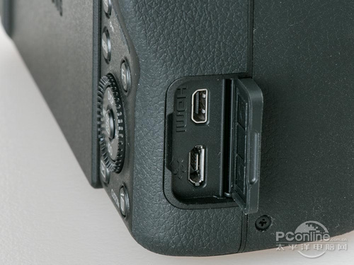 三星NX30的HDMI和USB数据接口,其中USB接口是能够直接充电的多用途接口。