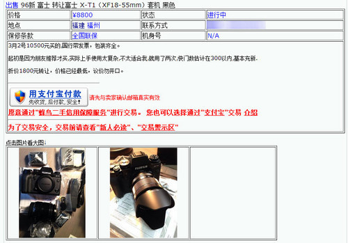 使用网络进行二手买卖,可以邀约当面交易,也可以通过信用中介平台进行网络交易,产品图片可以要求出让者提供,使用支付宝等第三方信用平台,收到货后才正式付款的形式,也让外地网上购买二手相机得到保障。