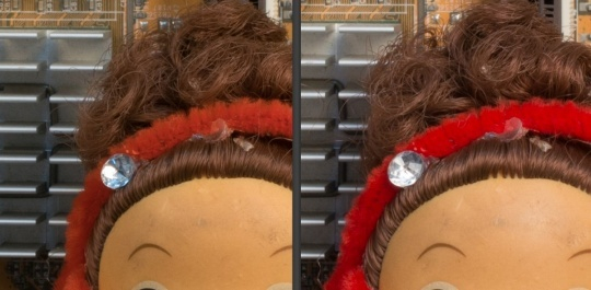 尼康D3300的ISO感光度范围较宽,从ISO 100到12800,可扩展到ISO 25600。D3300标准ISO上限比同像素级别的D3200更高。为考察D3300的高ISO表现,我们将D3300相机设置为RAW+JPG、矩阵 测光、预设白平衡、焦距40mm(AF-S 40mm f2.8G Micro)、光圈f8.0。PS自带Adobe Camera RAW8.3Beta将RAW转JPG,通过对比的方式,直接看到与前代D3200的区别。