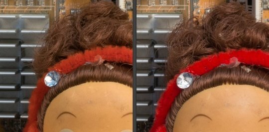 从测试结果来看,ISO 100-800的中低感光度下,画面保持非常干净,在ISO1600时噪点开始出现,ISO3200噪点开始增多,画面有些粗糙。ISO上升至6400噪 点已经很明显了,至于ISO12800-25600则完全没有实用价值,噪点非常严重,细节损失明显。不过整体效果来看,虽然噪点情况D3300和 D3200相差不多,但是对于细节方面,D3300还是要好于D3200。拿ISO6400举例,D3300还可以看到玩偶的发丝边缘与发卡之间连接,但 D3200就已经变成黑色一片。