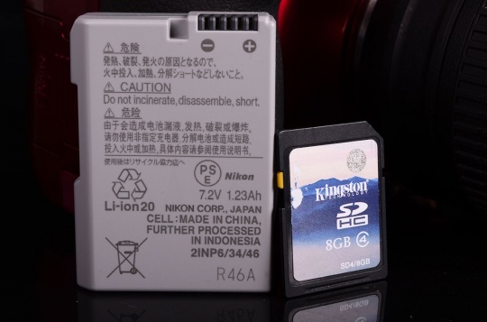 最后是电池和存储卡,尼康D3300采用EN-EL14a型号电池,容量要比D3200 使用的EN-EL14要多出200mAh,续航能力达到540张的水平。存储卡设计为SD单卡槽,支持SDHC与SDXC,可使用UHS-I高速传输的标 准,这对高像素的D3300来说储存RAW或是RAW+JPG也会更有效率。