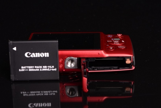 相机的底部设计了存放电池和存储卡的空间。因为相机机身设计的问题,因此IXUS155搭配的电池也非常小巧,容量大约为800mAh,在相机续航能力上稍微有所欠缺。
