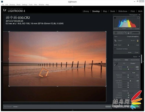 2、画面裁剪,二次构图永远都很重要。我觉得原片整个画面里,海天际线大约正好在正中了,并且前景的沙滩虽然平滑,但是也让人觉得有点多了。