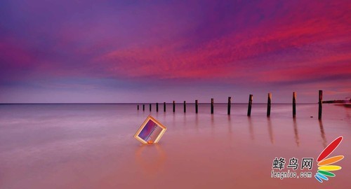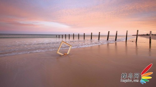 我选择了一个美丽的日出清晨、一个干净美丽的无人沙滩、一个有延伸的中景(一排木头桩子)和一个真的很大的木制画框,找这个画框花了我很多时间,借助网络的力量,感谢(3CM Photography的Tony)送给我这个废弃的木制画框。