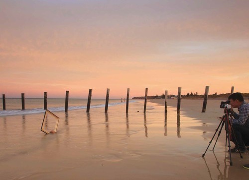我们驱车向南大约30千米,天完全没有亮,6点前就赶到了莫阿娜海滩(阿德莱德南郊区),整个拍摄大约持续了一个小时,上图是拍摄现场实景照片,整个莫阿娜海滩空荡荡的,没有人,只有我们3个摄影痴狂人和几个晨跑者。