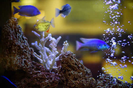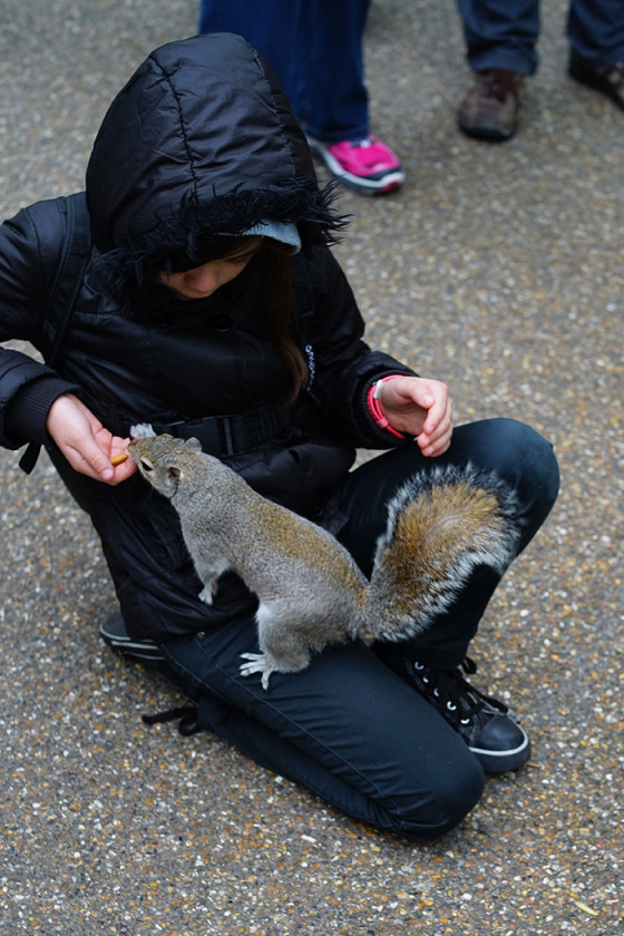 手头还有两张抓拍的场景。其实在之前的伦敦系列博客中我已经发了一些抓拍的行人、自行车之类的画面。这里展示的是我们酒店旅馆大堂里的热带鱼缸以及一只在圣詹姆士公园大胆窜到游客身上讨食吃的大松鼠。另外,我记得在有关PE展现场的图片中,还有一张抓拍现场跳弗拉明戈舞的画面。我当然没有能力用中一光学FE 50mm F0.95镜头这样的手动头拍摄体育场景,但这类实际动的不是太快的场景利用连拍+轻微转动对焦环,总是能够在一组照片中找到一两张合焦正确的画面的。