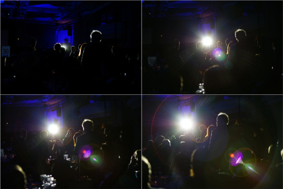可能和镜头的镀膜水平有关,中一光学FE 50mm F0.95镜头的抗眩光能力表现一般。我在索尼全球摄影奖现场直冲着聚光灯拍摄了下面这组照片,可以看到镜头的眩光比较强烈且形状变幻不定,这并不是什么好现象。但是,当我把这张照片作为壁纸发到博客上时,其实依然有朋友问这个眩光效果是怎么做的?非常漂亮!呃,所以我还是那句话,对于这枚镜头真的不必完全用标准镜头测试的那套理论来判断其优劣;