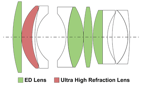 来看下中一光学FE 50mm F0.95镜头的规格参数。该镜头从体积上看起来不大但实际拿到手里第一反应就是“超重”。这样一枚全金属材质(据说全钢,并采用金属旋开式镜头盖)的镜头重量达到720g之巨,以至于与仅416g的索尼A7机身形成了鲜明的对比。本镜头采用10片7组结构,可以通过官方图片看到其中有4片ED和1片超高折射镜片。