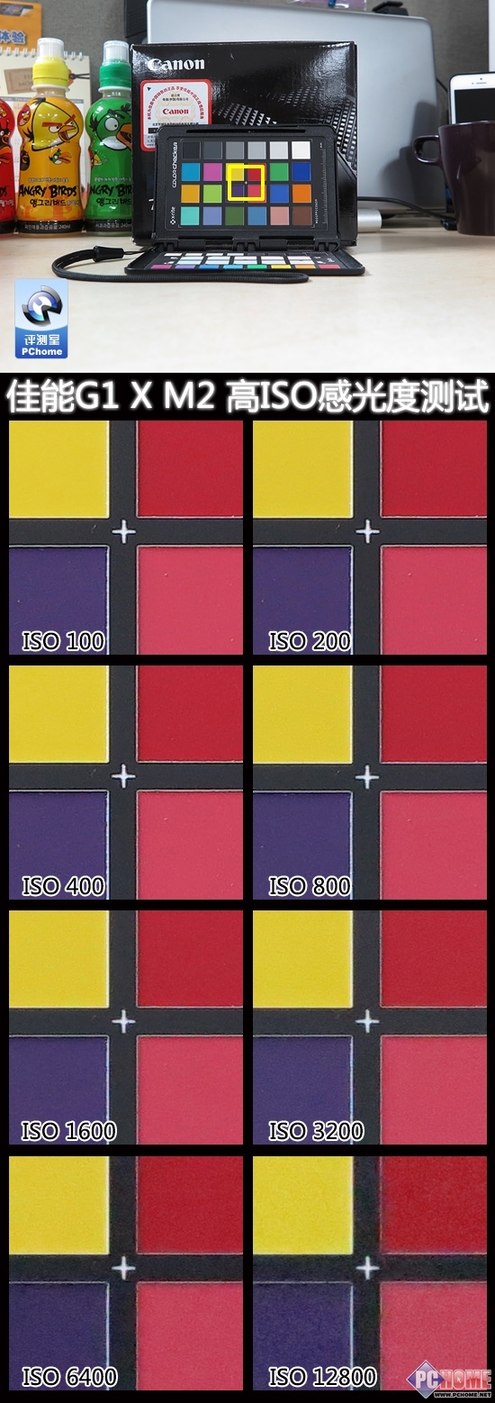 相比前代机型,佳能G1 X Mark II降低了100万像素来到1310万总像素。这块使用了芯片内噪点消除技术的CMOS可以有效控制固定型噪点以及随机噪点达到完美降噪的目的。我们可以从测试图中看到ISO在6400的时候整体的画面都是完全可以接受的。显然佳能方面把ISO的上限设置在了12800显得较为保守了一些。