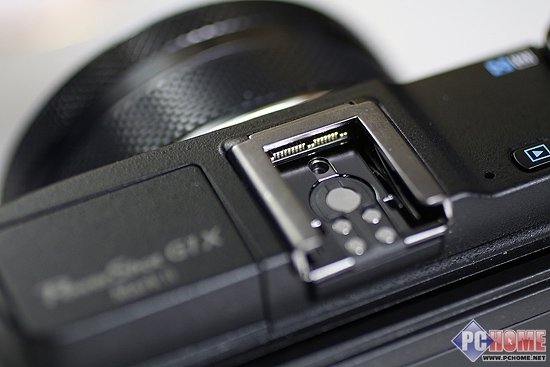 一排密密麻麻的触点,这就是佳能G1 X Mark II的热靴和其它机型不一样的原因所在。