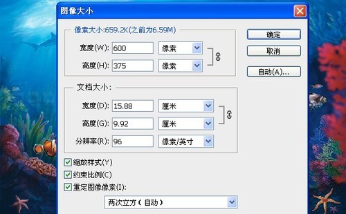 第四步:此时我们所做的所有的动作都会被记录下来,打开→图像→图像大小(CTRL+ALT+I)→输入所需要的图片大小参数→确定如下图所示。