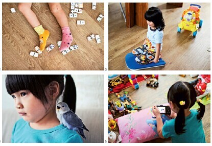 自己太爱拍照了,因此相机总是放在随手可以拿取的地方,这样才能随时拍到惊喜的一刻。我觉得妈妈有一个本能,像是雷达一样,孩子在进行什么活 动、演什么戏,妈妈一眼就能看穿,有时还能预测孩子的下一步呢。只要在自己心情被触动到的那一刻赶紧拿起相机,成长的痕迹就可以永远被保留下来了。