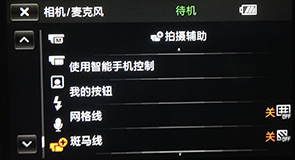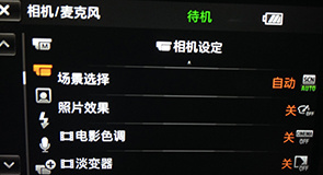 AX100E整体机身大气专业,除了以上看到的细节,索尼AX100E还具备WiFi功能和一触功能,WiFi功能需要智能手机/平板电脑需预装"PlayMemories Mobile"软件,可以即时分享、遥控拍摄视频;一触功能,需要支持NFC(近场通信)一触功能的智能手机/平板电脑才能使用,且智能手机/平板电脑必须预装了Android 4.0或以上版本的操作系统及"PlayMemories Mobile"3.1或以上版本的应用软件,可以快速把设备进行连接。接下来我们来看看AX100E的内部菜单。