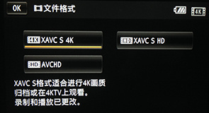 AX100E内置了时下较普遍的Wi-Fi功能和NFC功能,带来了实际的便利,除了可以拍摄4K视频外也有很多格式可以选择,同时,它的局部高清回放功能,将AX100E 通过HDMI线与高清电视机连接, 4K视频将自动转换为高清格式播放,在视频画面中选择特定的1/4部分,可以实现局部高清回放,这些功能都让AX100更加灵活。