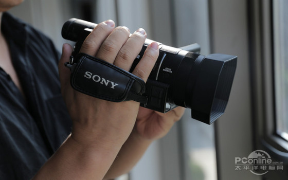 外观方面,索尼AX100E大致布局与传统的家用DV近似,机身外观大部分采用全黑色磨砂材质,质感看起来科技感十足,握手位置采用了橡胶蒙皮材质,手感良好,机器握在手中也起到一定的防滑作用,操作习惯了索尼便携式家用DV或者索尼专业的广播级摄像机能快速上手。
