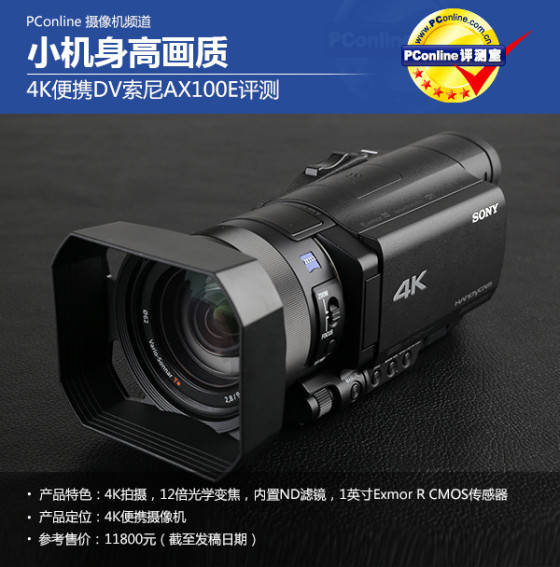 4K是近两年数码领域的热词,随着人类视觉需求不断提升,从标清到高清再到4K,不断前进,而从HD到4K的转变速度,很可能超过从标清升到高清的速度,今天评测的是索尼前段时间发布的一款全新4K便携式数码摄像机索尼FDR-AX100E(以下简称AX100E),其搭载了一颗1英寸Exmor R CMOS传感器,配备BIONZ X影像处理器可以拍摄60Mbps 码流的XAVC S格式视频,12倍光学变焦卡尔蔡司镜头,各种专业手动模式以及内置ND等功能,下面请看详细评测。