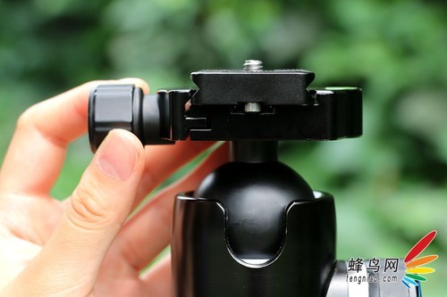 如果想要取下快装板,需要先向外拉出锁紧旋钮,之后再进行旋转旋钮,当旋转锁钮拧松后,就可以拆卸快装板了。