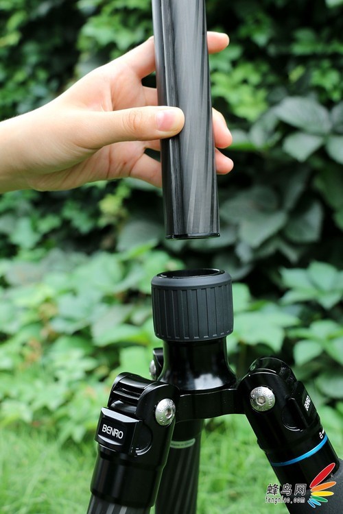 中轴倒置的好处就是可以实现低角度拍摄。这款三脚架不仅可以实现中轴倒置还可以把长中轴拆卸安装为短中轴进行使用。此处我们着重介绍中轴转换的操作方法。