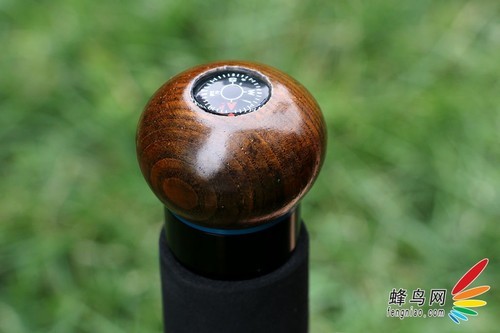 实木手柄的上方还设有指南针,方便我们在户外使用,非常人性化的贴心小设计。并且这个登山杖还可以安装手腕带进行使用。