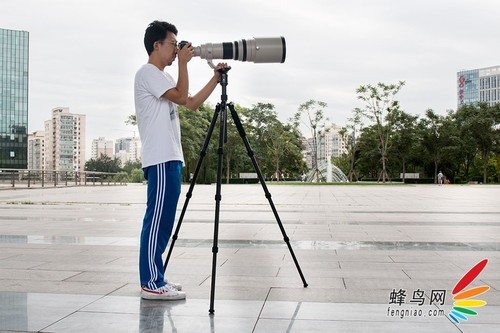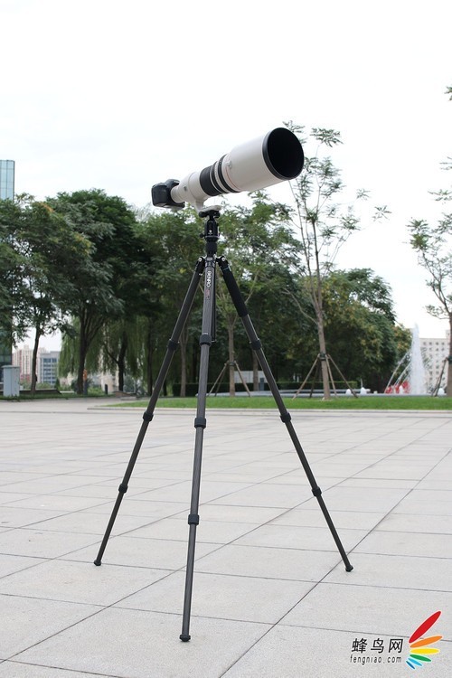 下面我们选择佳能EOS 5D Mark III搭配EF 600mm f/4L IS II USM镜头作为测试设备,整套设备的重量大约在10多斤,而这款三脚架的承重量是50斤,所以这款三脚架足可以Hold住EF 600mm f/4L IS II USM这样的“长焦大炮”级别的镜头。