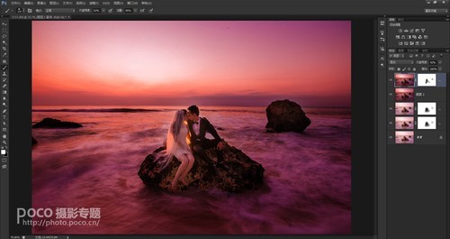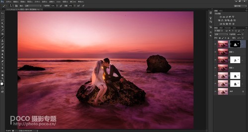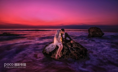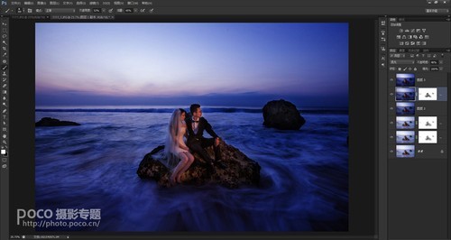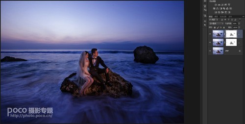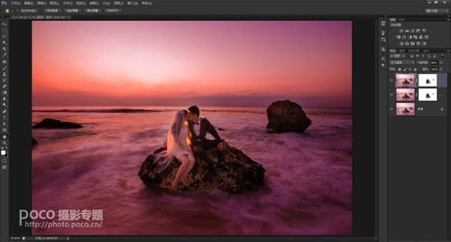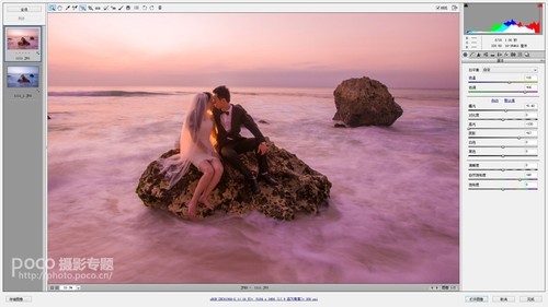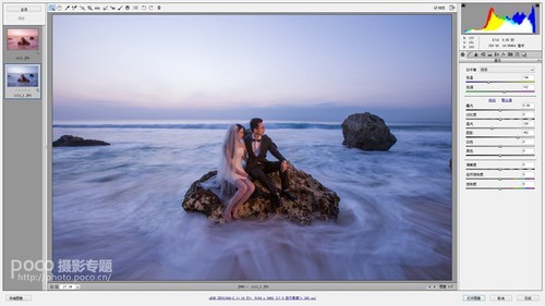 画面整体调整,并调整海水的色温,是海水呈现冷色调,是画面中呈现有冷暖色调的对比。最后锐化保存。