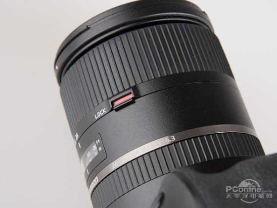 大变焦镜头特有的变焦锁止键,在腾龙28-300mm上自然少不了。不过相对来说,这支镜头的重量还不至于很容易脱出,也有可能使用时间长了之后变焦手感会变松。
