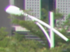 在最长焦端300mm,成像的锐度表现就要比广角端以及中段焦段要差了,这也是大变焦镜头不可避免的一个弱势,中央位置的成像锐度并不高,而边缘部分较大反差的地方,色散明显。长焦端拍摄的图像在缩小图片的时候,仍有较好的观赏性。