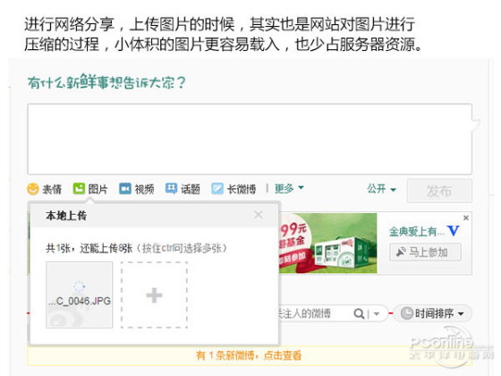 因此无论是电脑端还是移动端,涉及到上传图片的事情,通常情况是对原图片进行压缩后才保存在服务器。无论是用相机拍的3000万像素照片还是手机拍的 1000万像素照片,上传后的像素通常在300万以下,也就是说,对于网络分享来说,像素并不是一个很重要的事情,你的照片拍得清不清楚,漂不漂亮和像素 没有直接关系。
