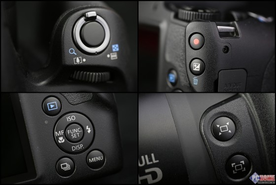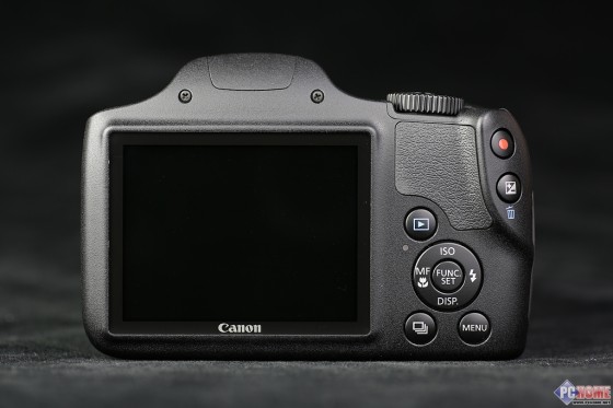 整个背面的大部分被3.0英寸LCD屏幕所占据,右侧手柄处为按键区,拇指处的蒙皮设计和手柄的突出设计进一步加强了握持性。