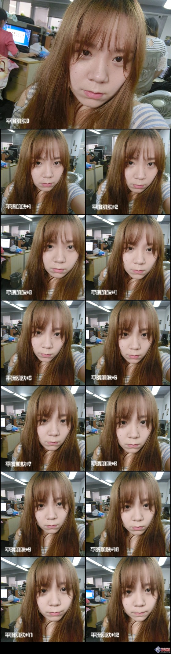 卡西欧TR500拥有12级磨皮效果,加上原始效果一样有13种可能性可供选择。如果天生肤质就很好的女生呢,则可以降低磨皮的等级,以突显皮肤的纹理质 感;就算肤质有瑕疵(比如那几天长个痘什么的),也没关系12级效果绝对够用。下面的对比图就是12级的不同效果,磨皮强度完全可以根据个人的喜好,想要 极致的就直接12级吧。
