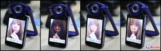 卡西欧TR500补妆镜模式(从左至右:标准亮度、暗、亮、左右翻转)
