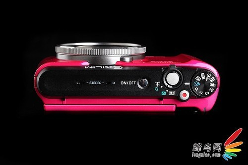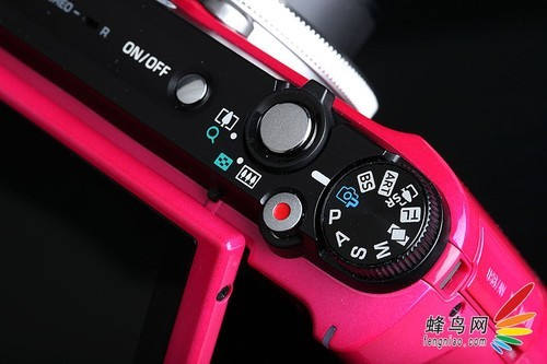 机身顶部除了常规的电源、快门键、摄像键、变焦拨杆和模式拨盘以外,还有立体声麦克风,排列简单,操作便捷。