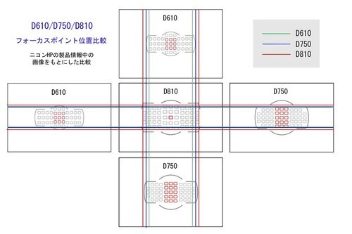 尼康D610采用Multi-CAM 4800对焦模块,具备39个自动对焦点(9个十字形对焦点),对焦点基本上集中在了取景器的中央,覆盖率较低,并且只有中央的9个对焦点是十字形的,边 缘的全部为一字型对焦点。而尼康D750的51个对焦点形成高密度网络,全面覆盖画面中心,可实现卓越的拍摄对象捕捉。15个十字型感应器经精心排列,可 在垂直和水平方向快速进行相位侦测,所有对焦点均能在f/5.6光圈下进行响应。