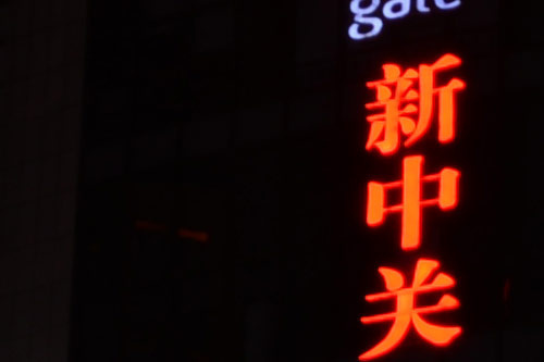 在100%放大截图中,D750表现的红色灯光字体更为聚拢,虽然整体较暗,但楼的玻璃方格细节被保留下来。