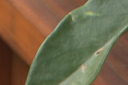 在100%放大截图中,D750的叶片细节比D610偏锐一点,白色花盆部分偏黄。